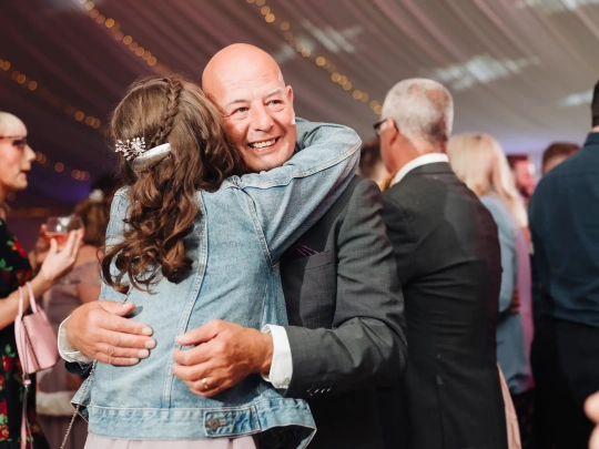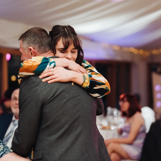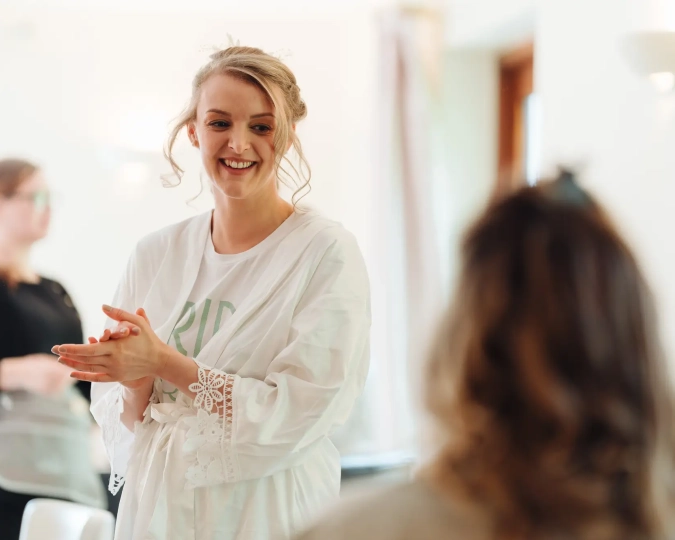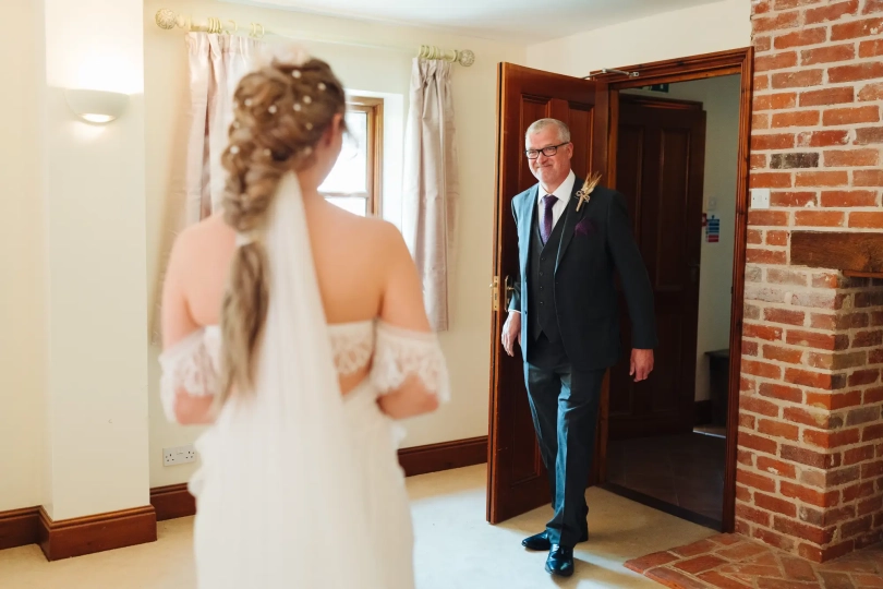 The day began like many others, with the bustling energy of morning prep. Natalie was surrounded by her friends and sisters, creating a lively atmosphere as they prepared for the ceremony ahead. Amongst the whirlwind of activity, we managed to fit in a reveal shot for both the bridesmaids and Natalie’s dad. Always a highlight of the morning, and always a little emotional.