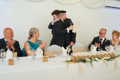 After the ceremony, they all went outside to throw confetti and take group photos. Always good when one of the best men suggests lifting the groom. Not sure Saxon agreed but he’s a good sport.