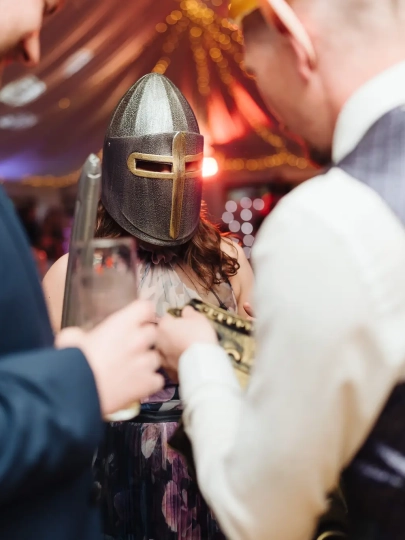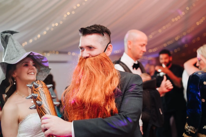 And you’d think a Dungeons & Dragons-themed cake was enough….well… to everyone’s surprise Natalie and Saxon had come prepared! Turns out, there were outfits of elves and knights hidden away, lots of guests got dressed up and danced the night away! I’ve done plenty of weddings and photographed plenty of dancefloors, but none with elves and knights, fake beards and ears, and rubber swords! One to remember for sure!